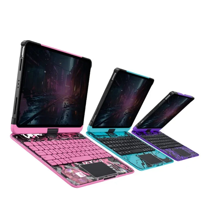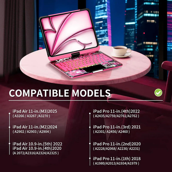 GLOWSPAD Pro - 360° Rotating Transparent iPad Keyboard with 7-Color RGB Backlight